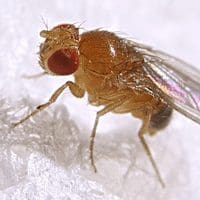 The fruit fly’s eggs are laid on top of or near rotting fruit or vegetable matter. The larvae emerge from the eggs and feed near the surface of the fermenting material for 5-6 days. The fruit fly larvae then crawl to drier areas of the food source or even out of the food source to pupate. Under ideal conditions, the life cycle of the fruit fly, from egg to adult can be completed in as little as eight days.