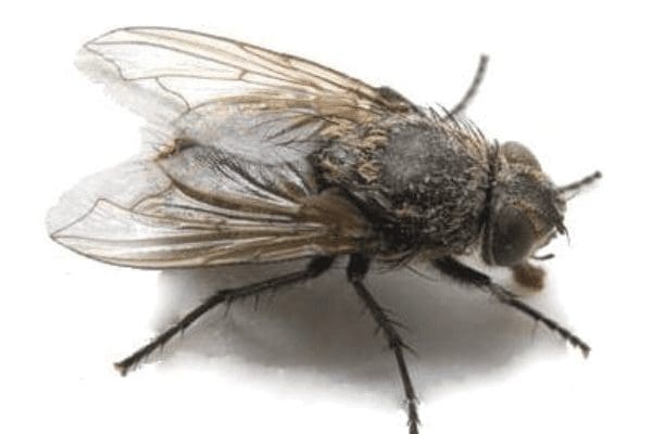 Cluster fly are dark greyish and about 8mm long with yellowish hairs on the back and with overlapping wings.